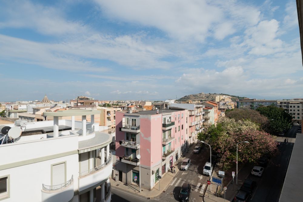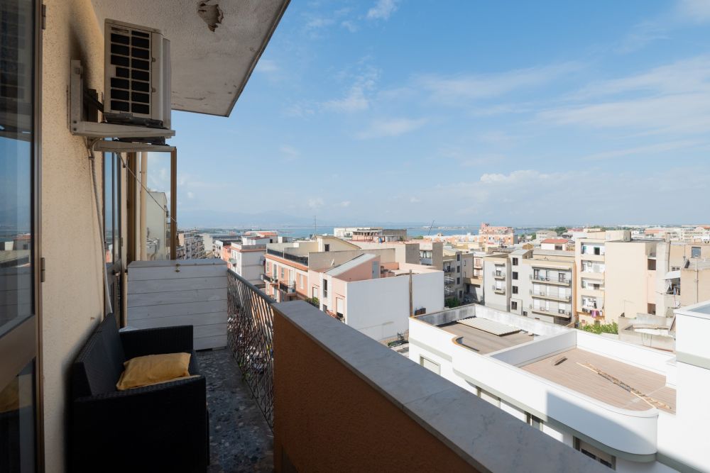 Due balconi, un con affaccio su via Monte Sabatino che offre una piacevole vista aperta sulla città e sulla laguna di Santa Gilla e uno interno, chiuso da una vetrata di alluminio, garantiscono ottima luminosità durante tutta la giornata.
